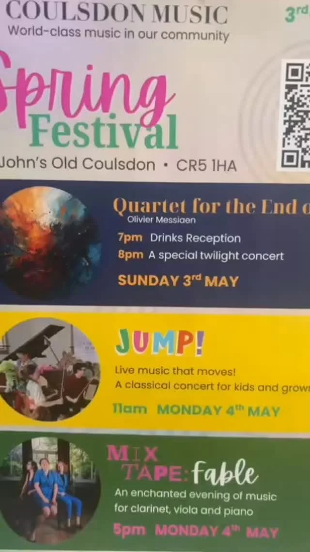 Coulsdon Music is bringing world-class chamber music and creative activity to our community, celebrating creativity, connection and the joy of live performance. With concerts, pop-ups, workshops and educational projects, we’re building a season that welcomes families, students and music-lovers alike. Join us as we continue to share music in fresh and inspiring ways!