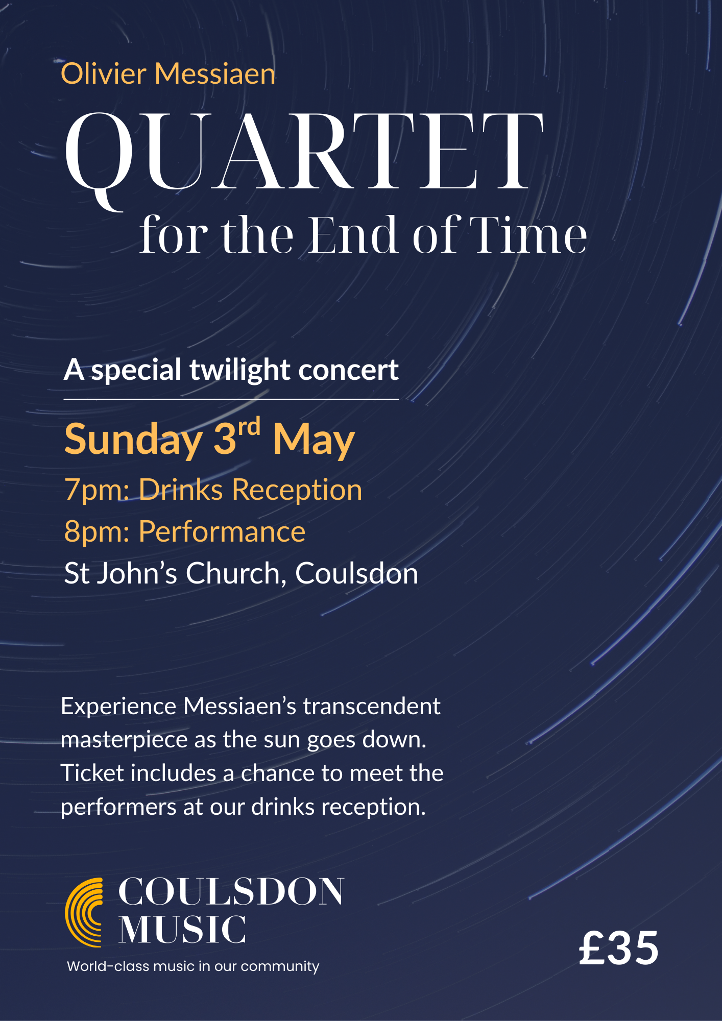 Join us for a warm drink from 7pm and the concert will start at 7.30!
